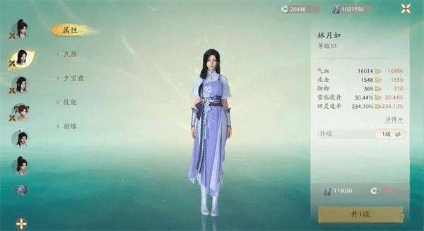 林月如设定:打破灵伤害,前期主堆攻击力,有好词条装备可不追求套装,40级左右可选云川套,提升灵力上限打高额破灵伤害,50级中期可选热海套,回灵速度拉高,切换QE输出不卡顿,利用Q技能无敌时间躲伤害过高强度副本;