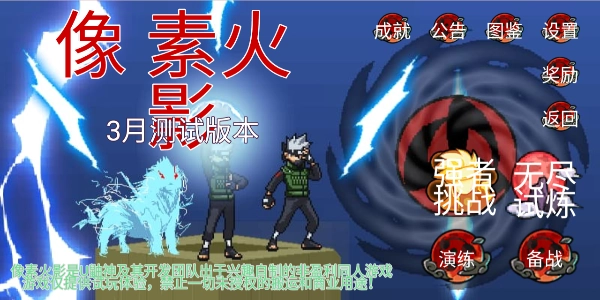 像素火影忍界大战卡卡西版是一款基于《像素火影》改编的同人格斗游戏。它高度还原了原作的角色形象、世界观设定以及各种忍术技能,释放大招时还能听到熟悉的技能音效。游戏以第四次忍界大战为背景,众多知名忍者纷纷参战,玩家可以选择操控自己喜爱的忍者投身战场,凭借流畅的连招操作和灵活的走位,与其他忍者展开激烈格斗,争夺最强忍者的称号!