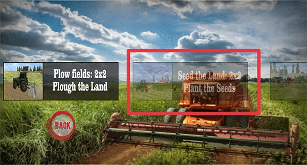 3、完成工具安装后,驾驶车辆前往农场。抵达农场后,点击界面右上角的犁形图标,即可完成耕田操作。