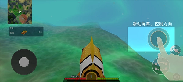 1、进入游戏之后,滑动屏幕控制鱼儿的行驶方向;