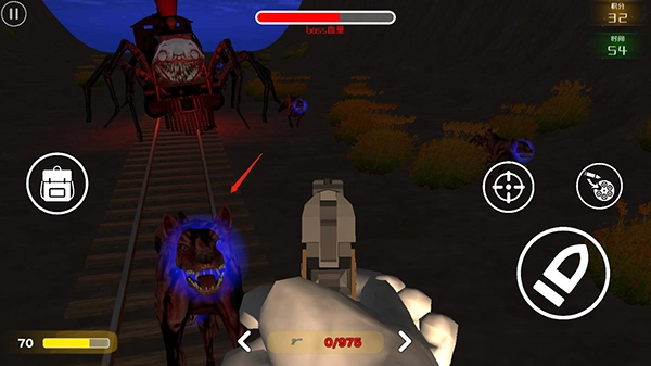 5、把武器对准怪物火车进行射击,击中后Boss的血量便会下降;