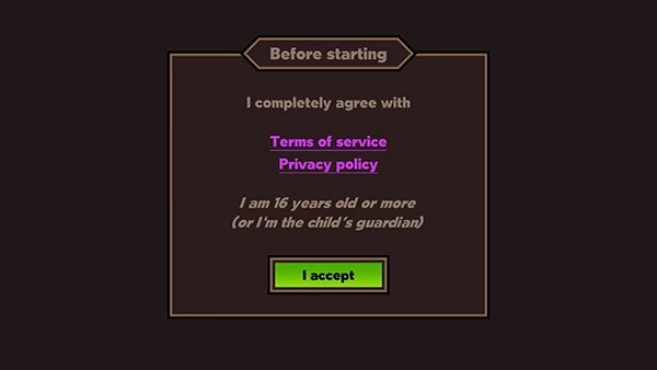 1、野性边境是一款非常有趣的游戏,它提供了许多精彩的玩法;首先,你需要打开野性边境游戏,首次进入时需要同意相关用户协议,选择【I accept】选项;
