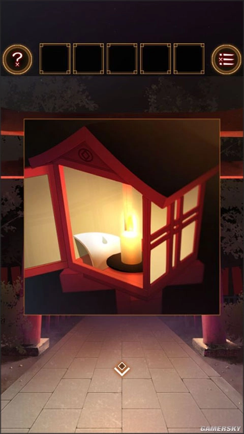 5、用【小钥匙】开启鸟居左侧的灯笼,取出【碎片】