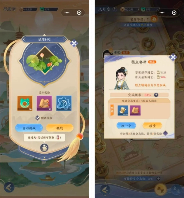 各种宴会里宾客身份和喜好都很明确,大家的口味都能满足!随时能溜进好友的茶馆去“查岗”,还能帮你招待客人,我这人还挺不错的呢!