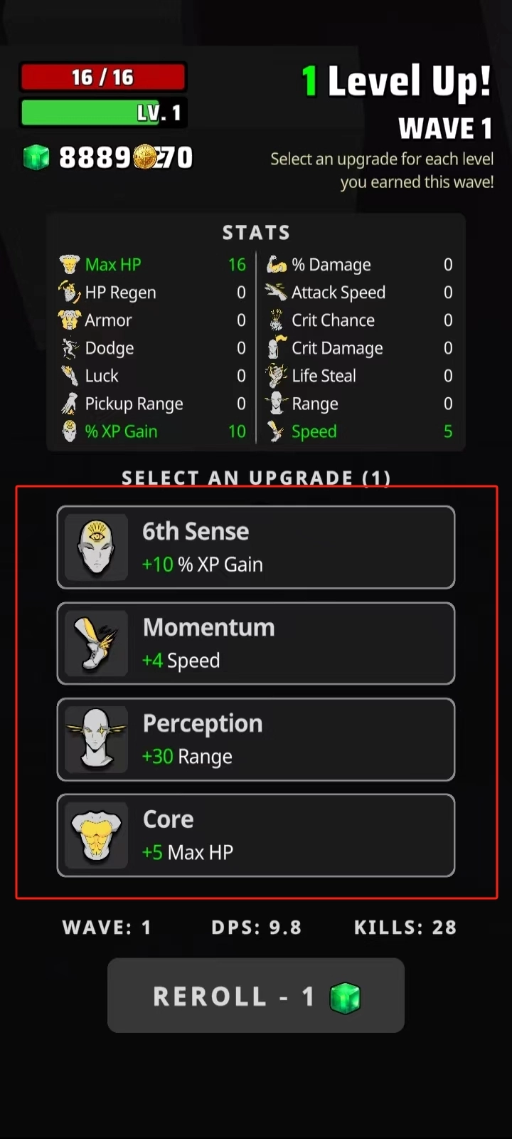 6、使用绿色的晶体购买武器,然后进入下一波战斗。