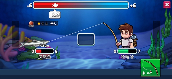 2、遛鱼技巧的掌握至关重要。屏幕顶部设有鱼的对抗计量条,一旦该计量条向左偏移幅度过大,便会致使失败;而当它朝右侧移动时,就代表你成功了,鱼会持续拉动这个计量条。