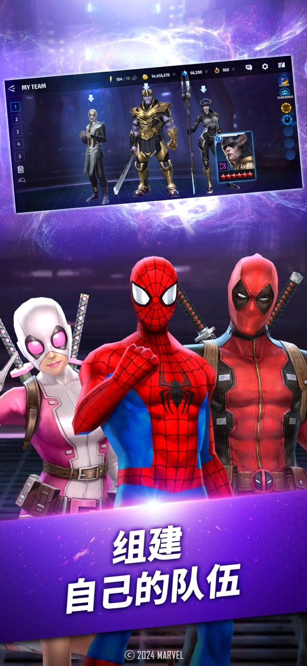 7、收集,升级,并根据漫威漫画情节中的人物关系,妥善地安排队伍中的英雄和反派成员来获得队友加成