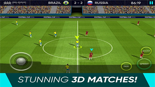 《足球世界杯》是一款深度还原足球赛事的体育竞技游戏。在这里,你能够挑选来自不同国家的球队,每位球员的专属技能与比赛风格都经过了精心设计。从传球、射门到防守,每一个操作都经过细致雕琢,力求为你带来最逼真的赛场感受。你需要依据比赛的实际情况灵活调整战术,指挥球员完成精准的团队配合,逐步朝着胜利的目标迈进。