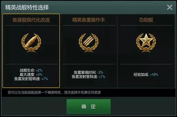 这三个金灿灿的徽章你们可以从中选择一组奖励来改造自己的战舰,不同类型的战舰还有不一样的特性。