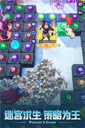 2.消除:游戏的核心玩法是消除。移除相同颜色的宝石可以获得积分和能量,还可以让玩家使用一些特殊技能来帮助战斗。