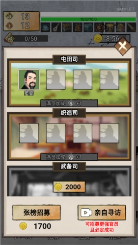 2、在游戏里你能进行抽卡操作,以此招募各类良臣与后宫,这些角色会成为你统治帝国时的支持者和伴侣。每张卡牌对应的都是历史上的名臣或佳丽,并且配有详尽的角色介绍,帮助你知晓他们的历史背景。
