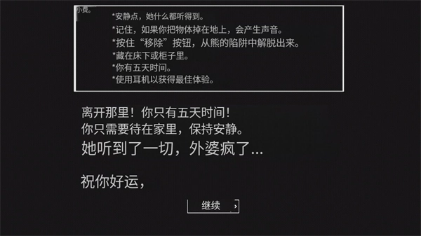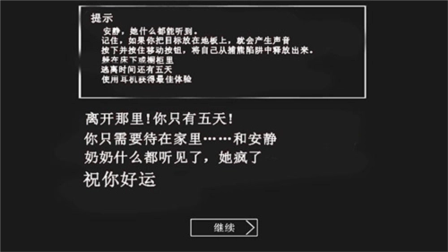 就是五天内打开大门逃离,那么奶奶就是直接追你追到门口就不追了,而后黑屏一段时间又会闪出奶奶的脸,还算挺高能的。