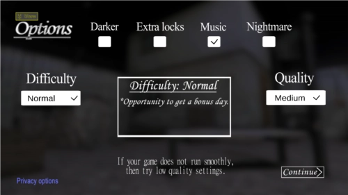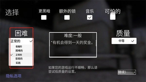 要是你是第一次玩这类游戏,建议把难度调成EASY(简单)模式,说不定它会友好一些……游戏里还能开启黑暗迷雾模式,开启后你的视野范围会变得特别小,眼前一片漆黑,你永远猜不到老奶奶会在什么时候从黑暗里突然冒出来!
