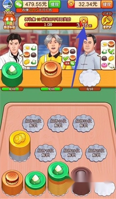 这一点是能够体现出来的,游戏里通过完成顾客的菜单来获取红包,红包奖励按照百分之一的比例进行提现,接待的顾客数量越多,提现比例就会越高。除此之外,还有视频奖励以及收集菜品的玩法,收集菜品所获得的奖励比较丰厚,要是有时间的话可以尝试一下。