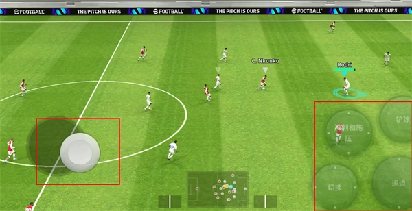 6、进入游戏后,可通过左侧操作调整球员的位置方向,右侧则能对球员的动作进行设置。