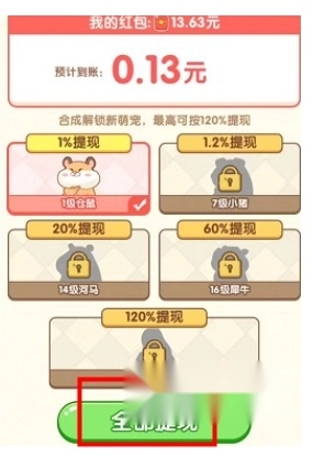 合成达到一定次数能获得红包奖励。开始游戏前建议开启自动合成功能,这样会省力不少。