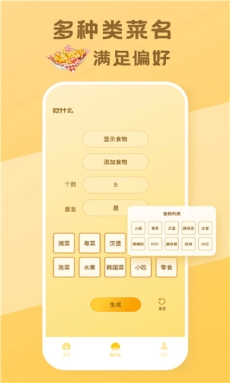 【吃什么】自定义食物,个数以及是否重复,点击开始即可抽选结果