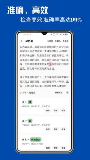 错别字检查工具App为大家提供了极为专业的错别字检测工具,它能轻松指出文章中的各类错别字,识别准确度极高。日常写作完成后,可直接将内容导入该工具进行检测,操作过程十分简单,无需繁琐步骤,就能轻松修改错别字。