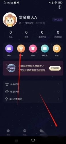 1. 启动应用程序之后,直接点击界面右下角“我的”个人中心入口,接着在功能列表里找到并选择“等级”选项进入。