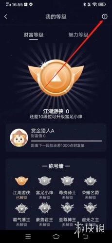 2. 进入等级详情页面,便能清楚看到当前账号的等级状态。若想了解详细信息,可点击页面右上角的帮助图标“?” 。