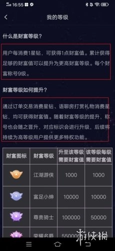 3、在帮助页面完整呈现等级提升机制:用户能够借助消费平台虚拟货币“星钻”来积累财富值,此数值会作为关键指标,对等级晋升的进度起到决定性作用。