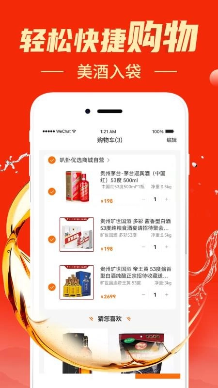 包含的酒类产品多样,分类也明确,让用户精确浏览推荐的商品,支持你的购物。