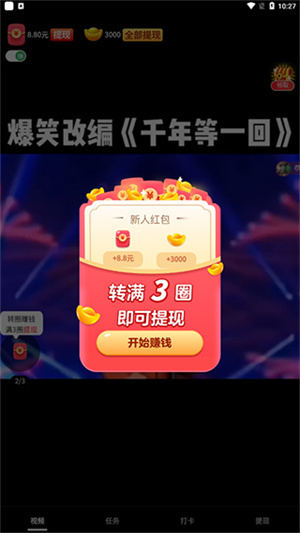 1、首先下载好本站带来的喜刷刷短视频,打开软件大家就会看见很多赚钱的方法,且进入即可拥有3元红包