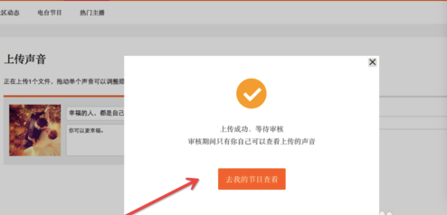7. 若出现以下情形,即表明你已上传成功,接下来只需等待官方审核。通常情况下,隔天你便能在自己的个人中心看到所录制的作品。