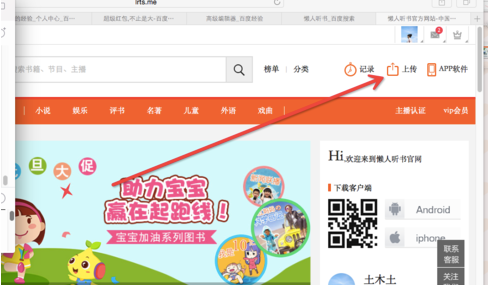 3.接着我们登陆懒人听书找到上传声音的入口,怎么登陆进去我就不说了,直接看上传部分如图所示