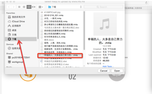 4.点击以后,会出现以下窗口,按照窗口的提示操作,此平台支持MP3, WMA,AIFF,AIF, WAV, FLAC, OGG, MP2, AAC,AMR等音频文件格式
