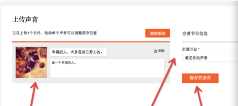 6.上传以后,官网会转换成以下界面,如图所示,根据要求,上传一个照片,然后见简介写一下,选择你所属的节目,如图所示,然后保存并发布