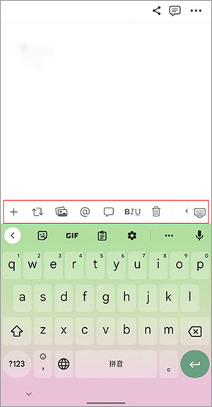 2、来到编辑界面之后,先输入标题内容之后点击下方的文本区域,可以看到输入法上方有工具栏弹出;