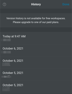 谁都会有手滑的时候。软件会为免费用户的每一条 Page 保存 3 天的版本记录。我曾经就手滑不小心删除了一些重要信息,这一功能挽回了我一整天的工作量。
