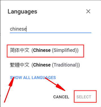 3、在跳转的languages界面中,将语言设置为简体中文,如图所示。