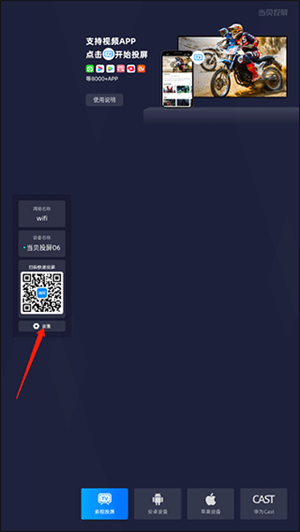 当贝投影/当贝盒子设备在投屏前,需打开当贝投屏软件(系统版本在3.0以上无需打开),选择对应的设备(安卓还是苹果设备)进行投屏,当贝投屏软件中同样提供对应设备投屏方法