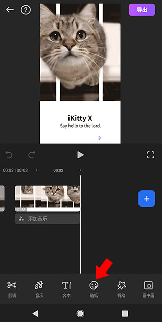 5、位于最下方的是工具栏,通过它能够对视频进行剪辑操作,还能为视频添加文字、贴纸以及特效等。