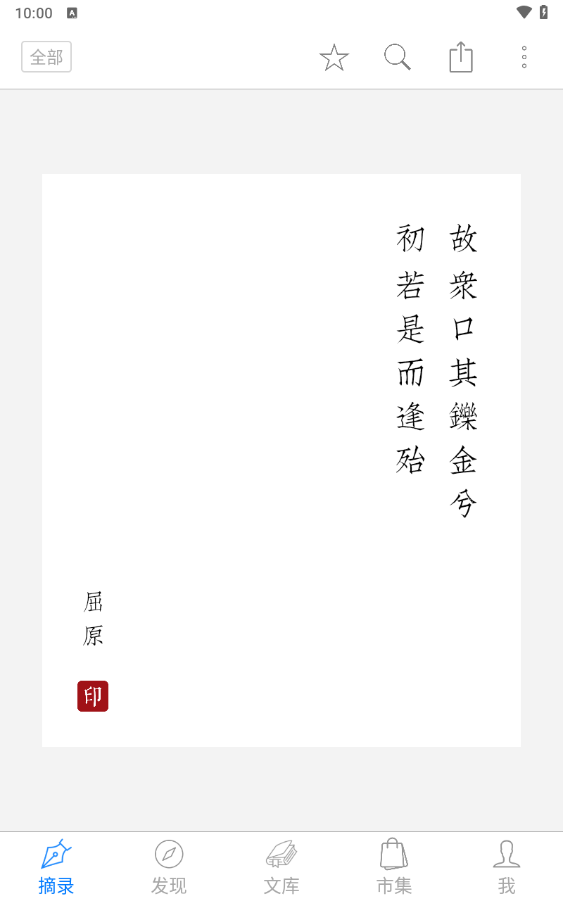 5、收藏功能涵盖:诗词文库的收藏以及摘录名句的收藏。
