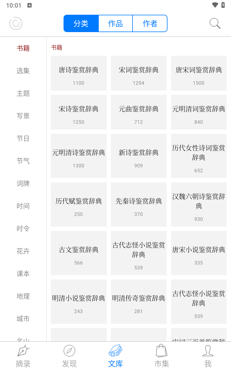 6、分类赏析:包含选集、主题、写景、节日、节气这五大分类。