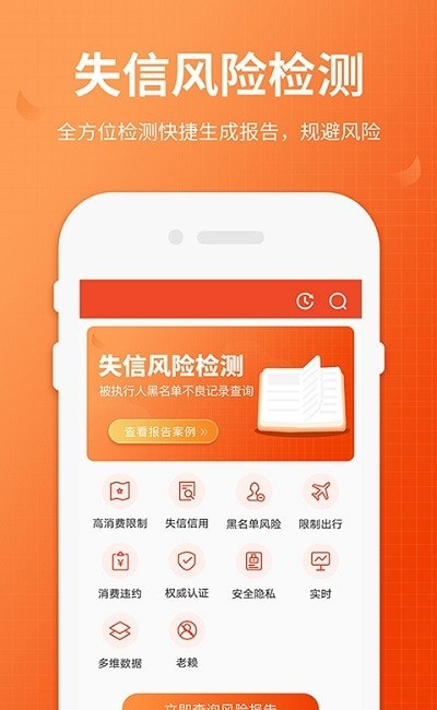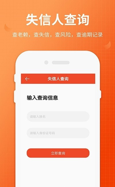1. 详细查询:一键通过姓名、身份证,即可查找黑名单、法院执行人、失信人、老赖相关信息。