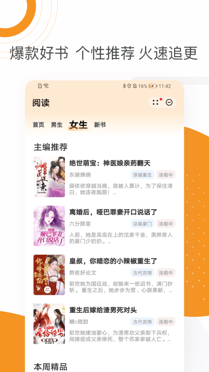 - 热门爆款好书 专属个性推荐 赶快火速追更