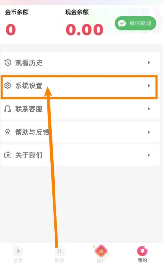 2、来到“我的”界面,点击【系统设置】即可进入。