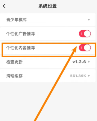 3、进入系统设置界面,开启【个性化内容推荐】即可