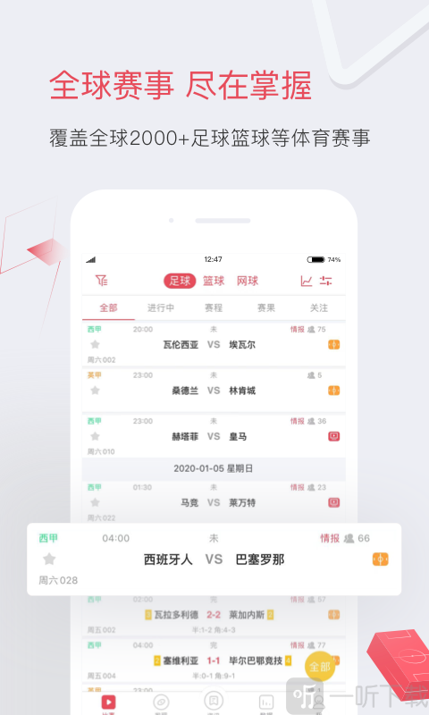 2. 包含各类赛事的比分直播、动画直播以及赔率数据,无论赛事规模大小。