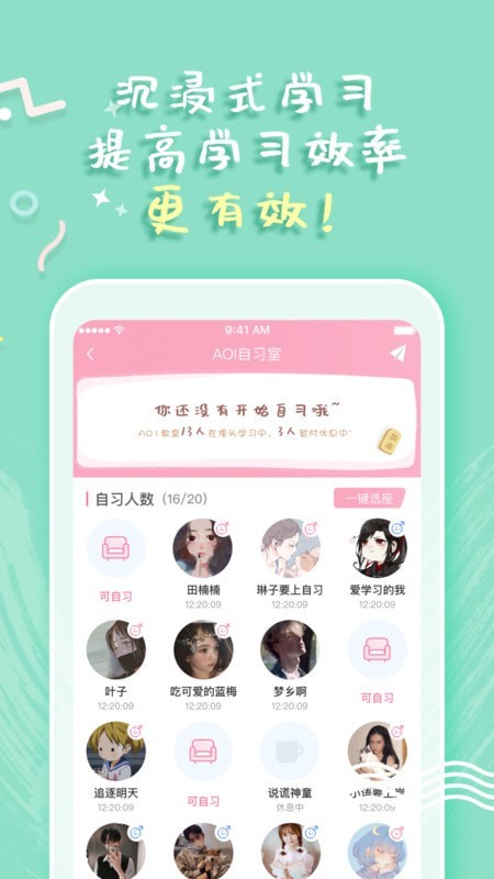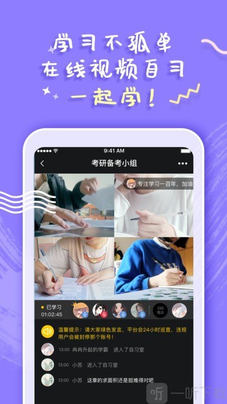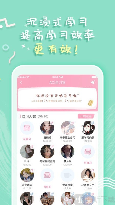 1. “一起自习”是一款应用程序,借助它我们能够放下手机,全身心投入到学习与做事当中。