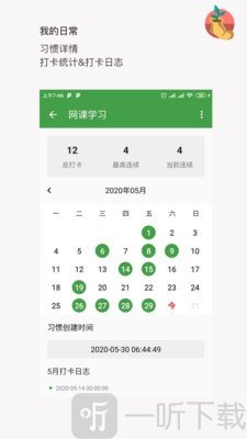 3. 借助应用程序的日历视图来查看签到统计信息,这样有助于您培养更规律的生活与学习习惯。