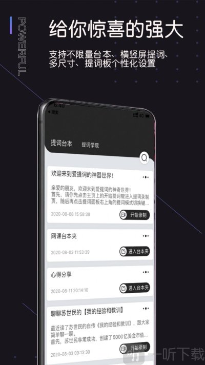 爱提词,堪称一款极为好用的手机提示软件,功能强大无比。它不仅能实现视频提词,还支持音频提词,借助这款软件,你在手机上就能轻松提取所需内容。不仅如此,它还允许自定义设置各类文字,无论是制作短视频,还是拍摄过程中,都能随时使用,无疑是视频制作的得力助手。