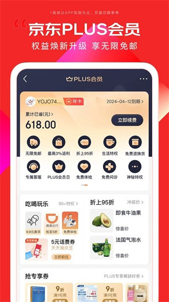 京东PLUS会员享有专属95折优惠,还能享受无限次免邮服务。