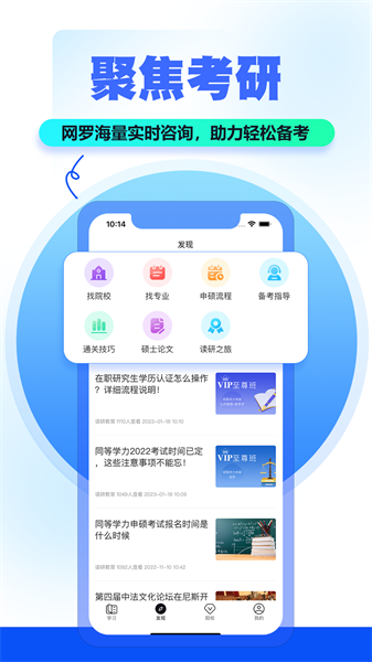 读研小助手,这是一款专门为考研学子精心打造的在线学习利器。借助它,你无需额外破费,就能轻轻松松完成日常的复习任务。在这款应用里,你随时都能查看各章节知识点对应的网课视频,对每个知识点展开深入学习,助力你的考研之路更加顺畅高效,从而顺利通关。