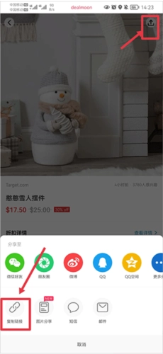 3、还能点击右上角的分享图标,接着点击复制链接,最终把链接粘贴至国外购物软件里完成下单操作。