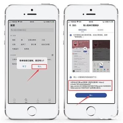 2、把链接复制后,回到【发条音乐】,自动识别到链接中的歌单,点击【导入】即可同步。